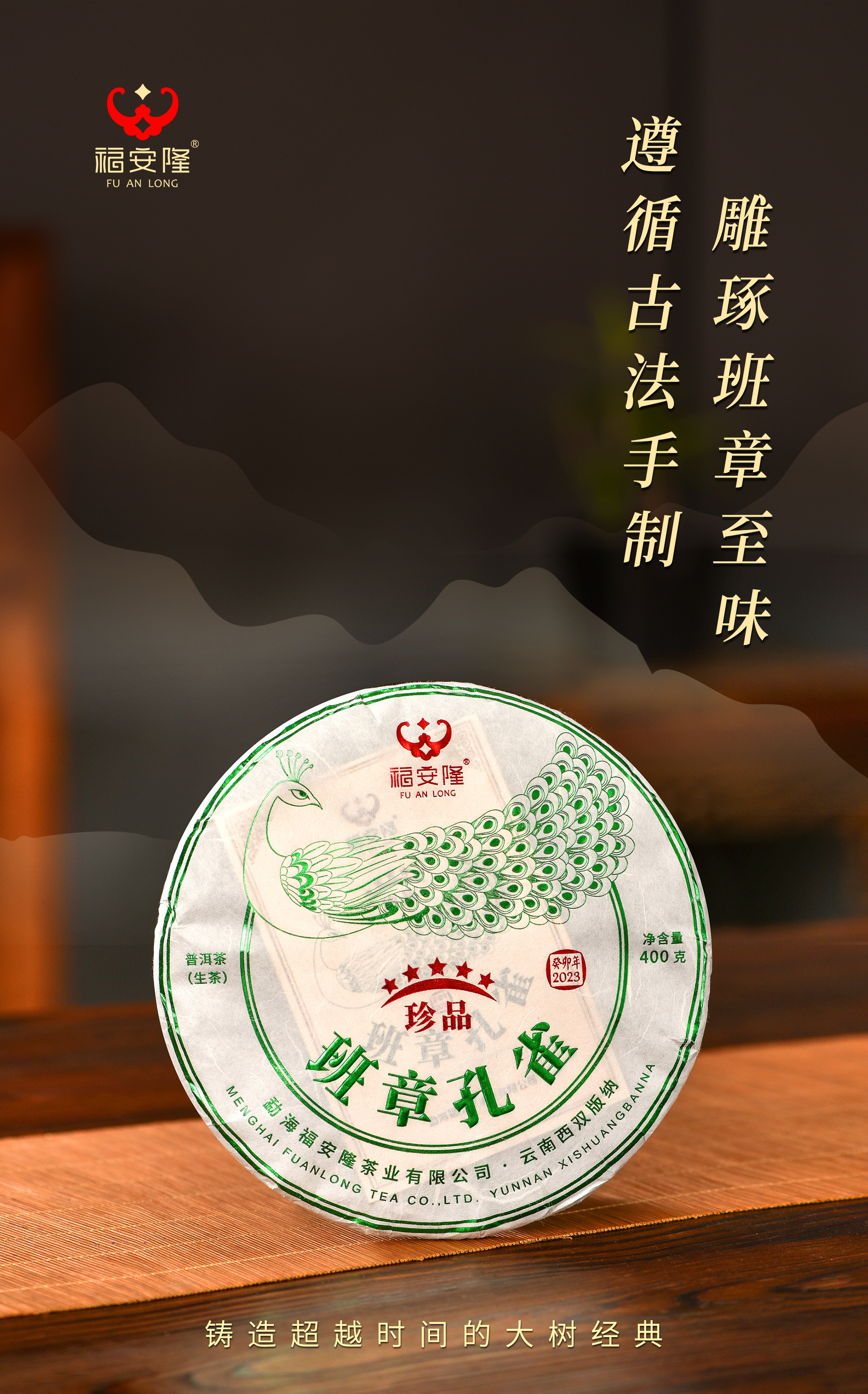 班章孔雀傲然卓立,隽永弥臻,彰显当下品饮价值与未来转化潜能,兼具品鉴、馈赠、收藏三重属性,高端烫金礼盒,大气磅礴,尽显尊贵礼遇,缔造班章不朽传奇。